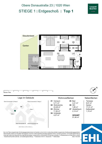 Eingebettet zwischen dem Donaukanal, dem grünen Augarten und dem pulsierenden 1. Wiener Gemeindebezirk vereint das LeopoldQuartier Natur, Urbanität und höchste Lebensqualität. Stephansdom, Kärntner Straße und die kulinarischen Hotspots des Servitenviertels sind fußläufig erreichbar.