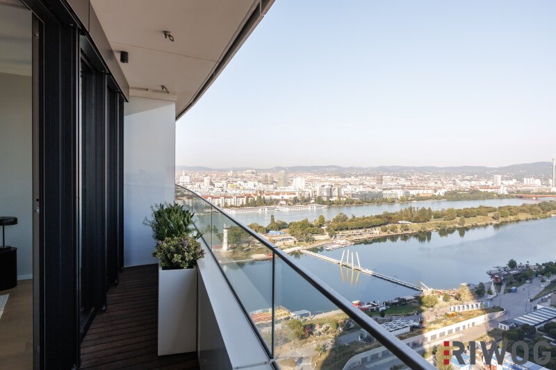 In dem mit Spannung erwarteten neuen Landmark der Stadt, den Danube Flats, dem mit ca. 180 Metern derzeit höchsten Wohnturm Österreichs direkt an der Donau, gelangt eine ab sofort bezugsfertige 2-Zimmer-Wohnung mit Balkon im 25. Stock zum Verkauf. Als Highlight ist im Kaufpreis bereits eine Einbauküche mit Geräten enthalten. Die vorhandene, geschmackvoll gewählte Möblierung kann optional erworben werden. Die Wohnung besticht durch eine luxuriöse Ausstattung, eine nachhaltige Energieversorgung mittels Fernwärme und einen Fernblick der Superlative Richtung Kahlenberg. Die Danube Flats bieten seinen Bewohnern maximalen Wohnkomfort auf höchstem Niveau und zahlreiche Annehmlichkeiten wie etwa einen Members Club mit u.a. Spa- und Fitness-Bereich und einem ganzjährig beheizten Outdoor-Pool mit Blick Richtung Innere Stadt, eine Business-Lounge mit Konferenzräumen und Workingspace, eine Event-Lounge mit Profi-Küche ideal für Feierlichkeiten und private Events, ein Restaurant mit großem Gastgarten und einen Supermarkt direkt im Gebäude. Die Lage zwischen den traumhaften Naherholungsgebieten der Donauinsel, der Alten Donau und der Lobau und die direkte Anbindung an die U1-Stationen Donauinsel und Kaisermühlen VIC, wodurch die Innenstadt in nur ca. 10 Minuten erreichbar ist, runden das Angebot ab.