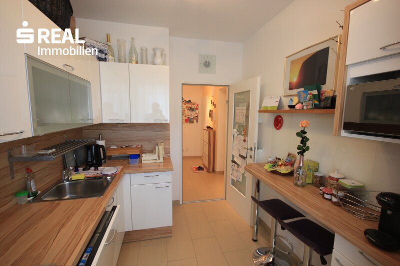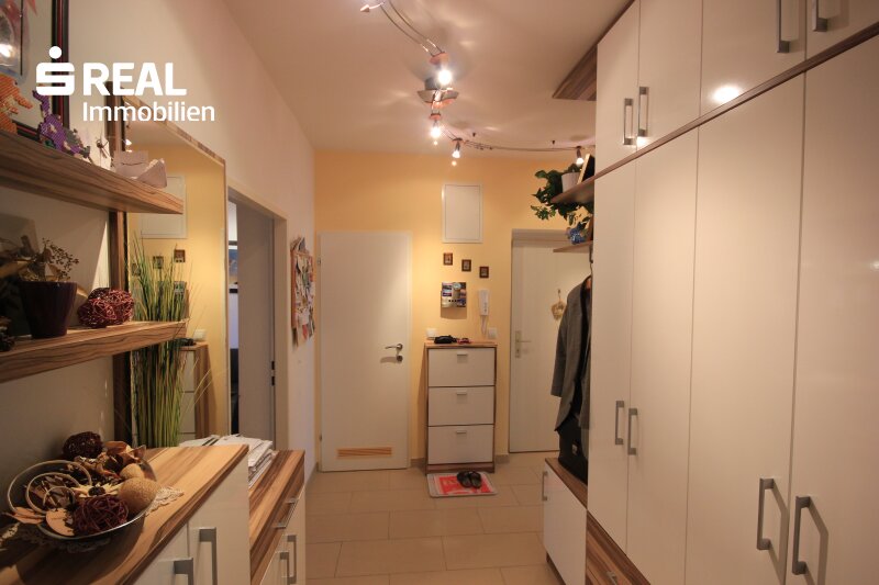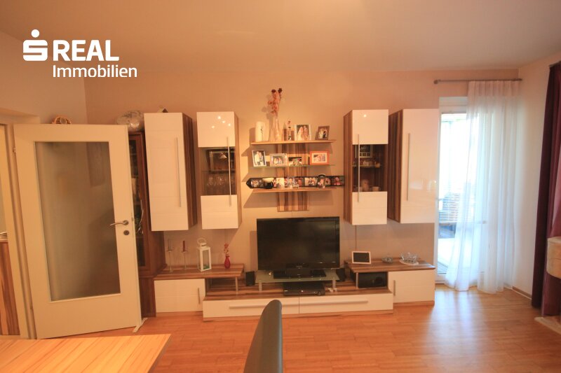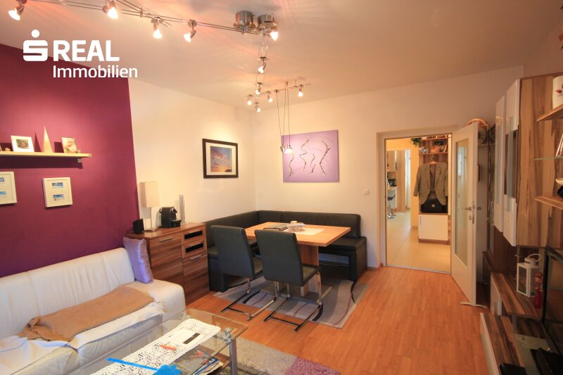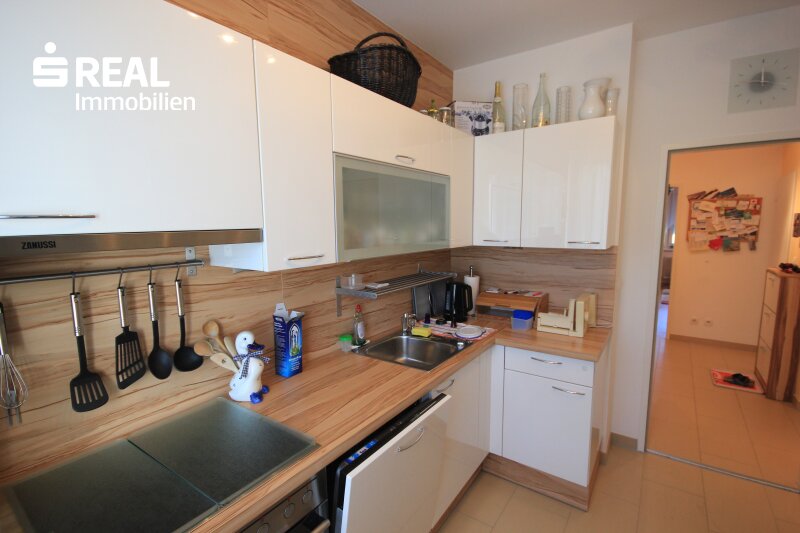 Die Wohnung ist über den Vorraum zentral begehbar, bietet Bad und WC getrennt, einen Abstellraum, eine geräumige Küche, ein ca. 20 m² großes Wohnzimmer mit Ausgang auf die Westloggia und zwei Schlafzimmer.
