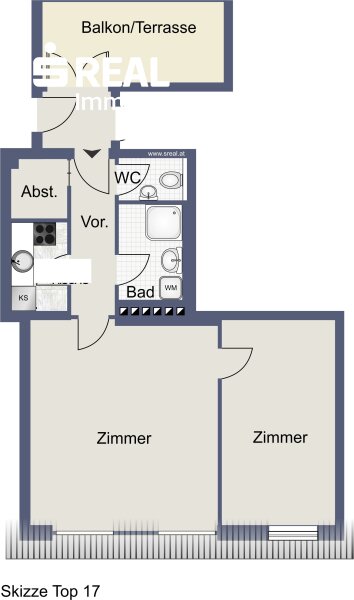 ein ca. 27 m² großes Wohnzimmer ein möblierte Küche eine schöne, sehr gut nutzbare Terrasse mit ca. 10,15m² ein Schlafzimmer ein modernes Badezimmer mit bodenebener Dusche und Waschmaschinenanschluss ein Gäste-WC mit Handwaschbecken einen praktischen Abstellraum ein Vorzimmer.Die Wohnung ist modern ausgestattet: schöner Parkettboden, moderne Fliesen, attraktiver Holz-Bodenbelag auf der Terrasse