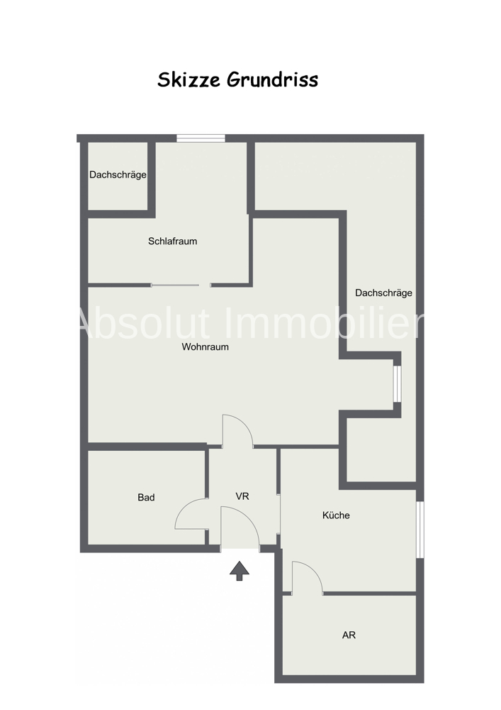 Die Wohnung mit einer Wfl. von ca. 42 m² befindet sich im 3. Obergeschoss und ist wie folgt eingeteilt: