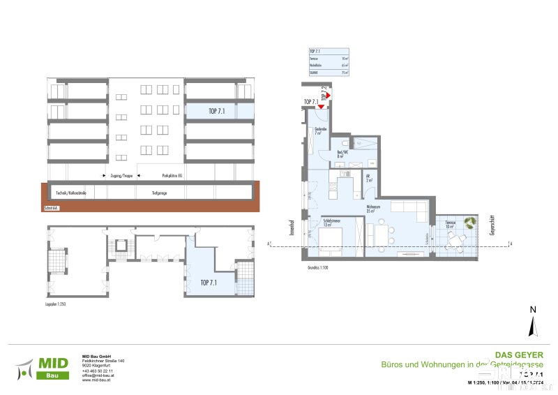 1 zugeordneter Tiefgaragenstellplatz optional EUR 150,-/Monat inkl. Ust.