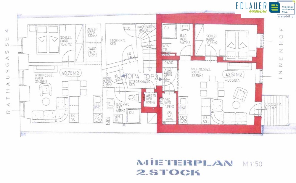 Die Wohnung Top 4 im Ausmaß von ca. 40,78 m² befindet sich im zweiten Stock (ohne Lift).
