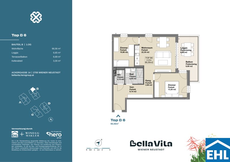 In Wiener Neustadt erwartet Sie ein modernes, einladendes Zuhause, das höchsten Wohnansprüchen gerecht wird. Das Projekt umfasst vier harmonisch in die grüne Umgebung eingebettete Baukörper. Durch ein sorgfältig durchdachtes Grünraumkonzept entsteht eine naturnahe Atmosphäre, die Ruhe und Erholung in den Mittelpunkt stellt.