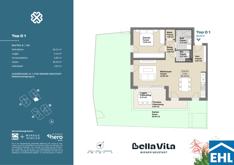 In Wiener Neustadt erwartet Sie ein modernes, einladendes Zuhause, das höchsten Wohnansprüchen gerecht wird. Das Projekt umfasst vier harmonisch in die grüne Umgebung eingebettete Baukörper. Durch ein sorgfältig durchdachtes Grünraumkonzept entsteht eine naturnahe Atmosphäre, die Ruhe und Erholung in den Mittelpunkt stellt.