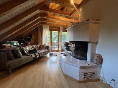 In diesem gemütlichen Dachgeschoss geniessen Sie rustikales Wohnfeeling mit einem charmanten Cheminée, Holzbalken und einem überdachten Balkon mit Blick ins Grüne. Die ruhige Lage in der Natur lädt zum Entspannen ein. Einbauschränke sorgen für ausreichend Stauraum und eine überdachte Parkmöglichkeit ist vorhanden. Ideal für alle, die ein gemütliches Wohnambiente in der Natur suchen.