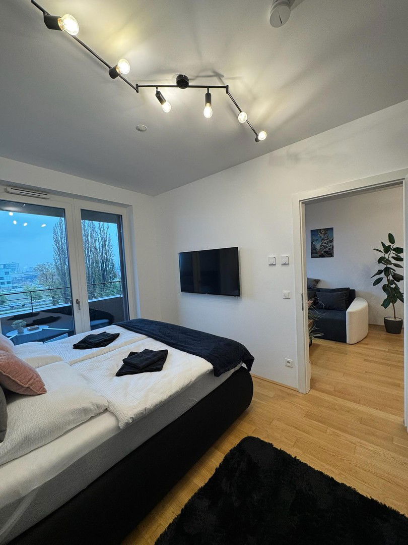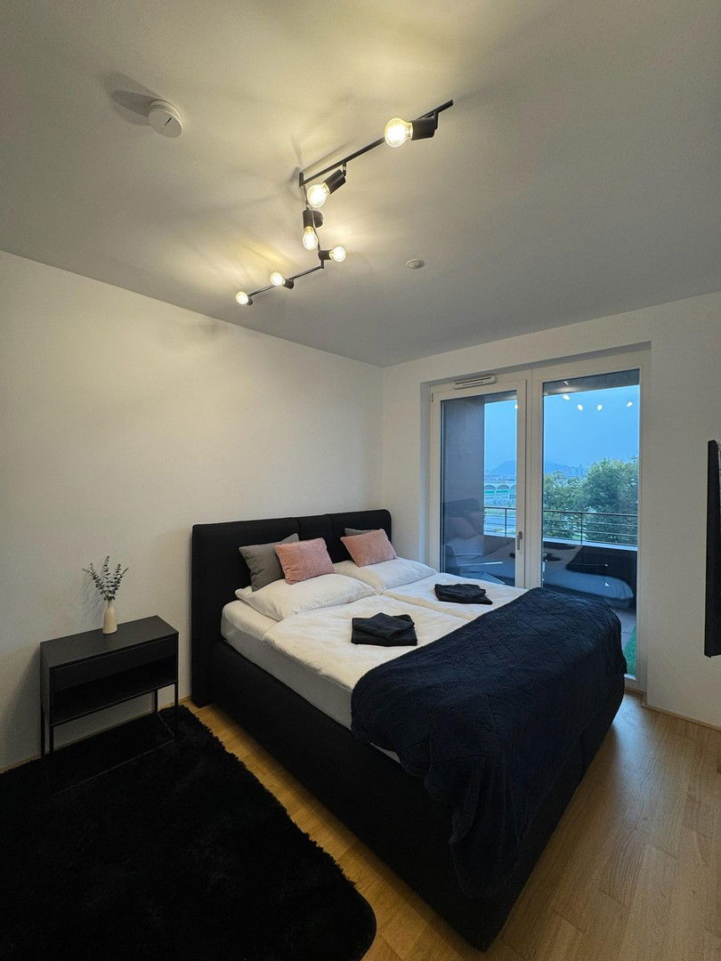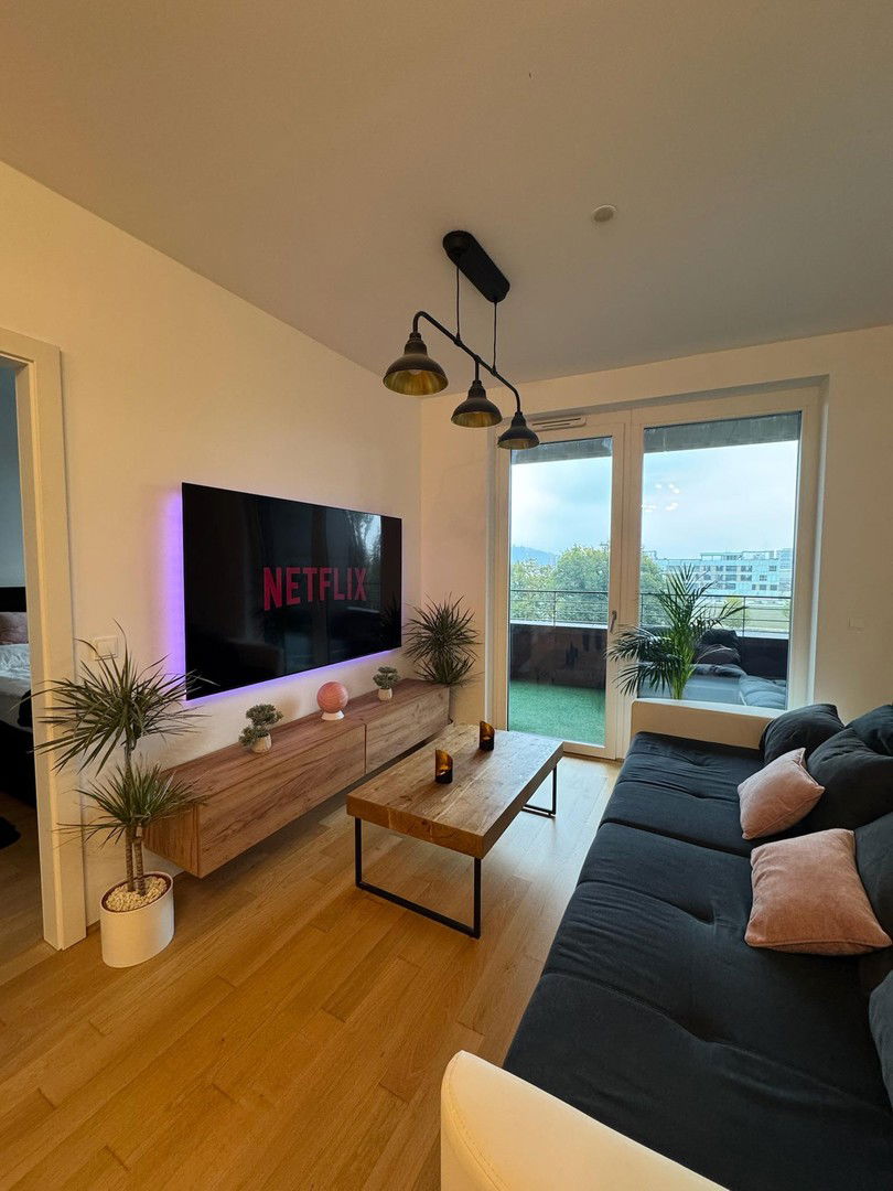 Eine wunderschöne moderne geräumige Wohnung mit Schlossberg-Blick, offene Küche, Wohnbereich und extra Schlafzimmer. Badezimmer mit Dusche und extra Toilette.