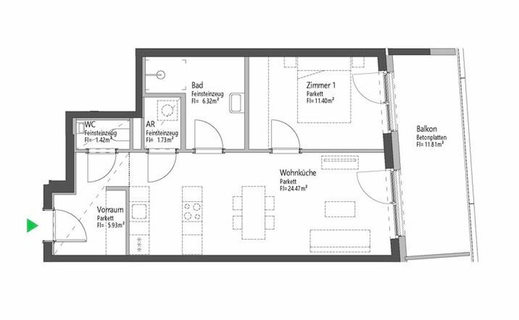- Spar (gegenüber), Lidl, Hofer, Billa, Billa Plus, Restaurants sind zw. 750 m bis 1.000 m weit entfernt.