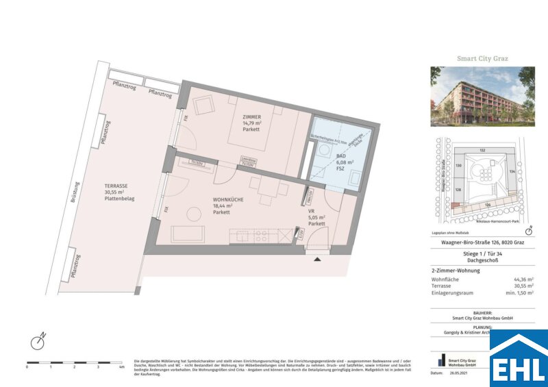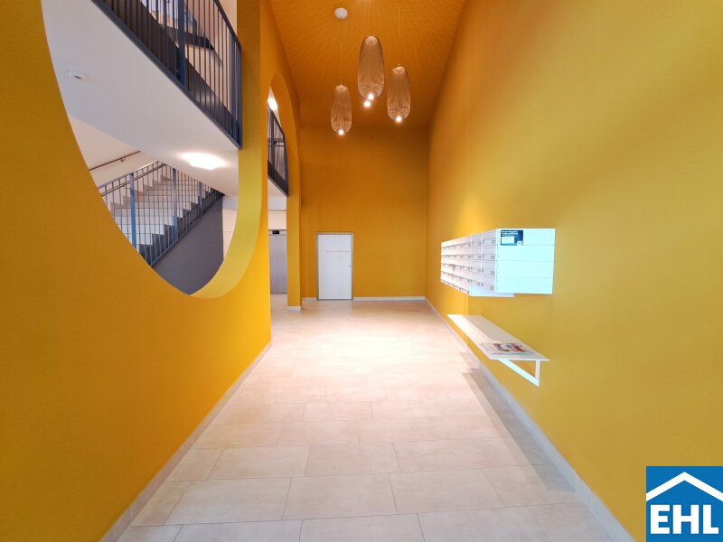 Den zukünftigen Smart Quadrat-Bewohnern stehen zudem eine Vielzahl an Gemeinschaftsräumen, wie z.B. Fitnessräume, Shared Offices, Indoorspielplätze sowie ein Spielplatz im Innenhof, Washing-Lounges, eine Fahrradwerkstatt, Hobby- & Freizeiträume sowie Stellplätze in der hauseigenen Garage zur Verfügung. Ein Nahversorger und eine Bäckerei mit Caféhaus befinden sich ebenfalls direkt im Wohnkomplex. Weitere Geschäfte des täglichen Bedarfs, Ärzte, Schulen und Gastronomielokale sind fußläufig erreichbar. Auch eine große Parkanlage wird derzeit auf dem Nachbargrundstück realisiert. Ein perfekter Mix aus urbanem Leben und privater Erholung!
