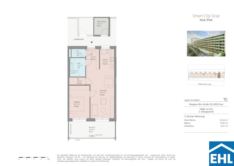 Die smarten Grundrisse und die Freiflächen der 49 Wohnungen sorgen hier für höchsten Wohnkomfort mit Wohlfühlfaktor. Zusätzlich zu der großzügigen Zimmeraufteilung verfügt jede Wohnung auch noch über einen Lagerraum, der direkt gegenüber der Wohnung über den Laubengang begehbar ist. Die Wohnungen verfügt außerdem über eine Fußbodenheizung, welche für eine angenehme Raumtemperierung sorgt.