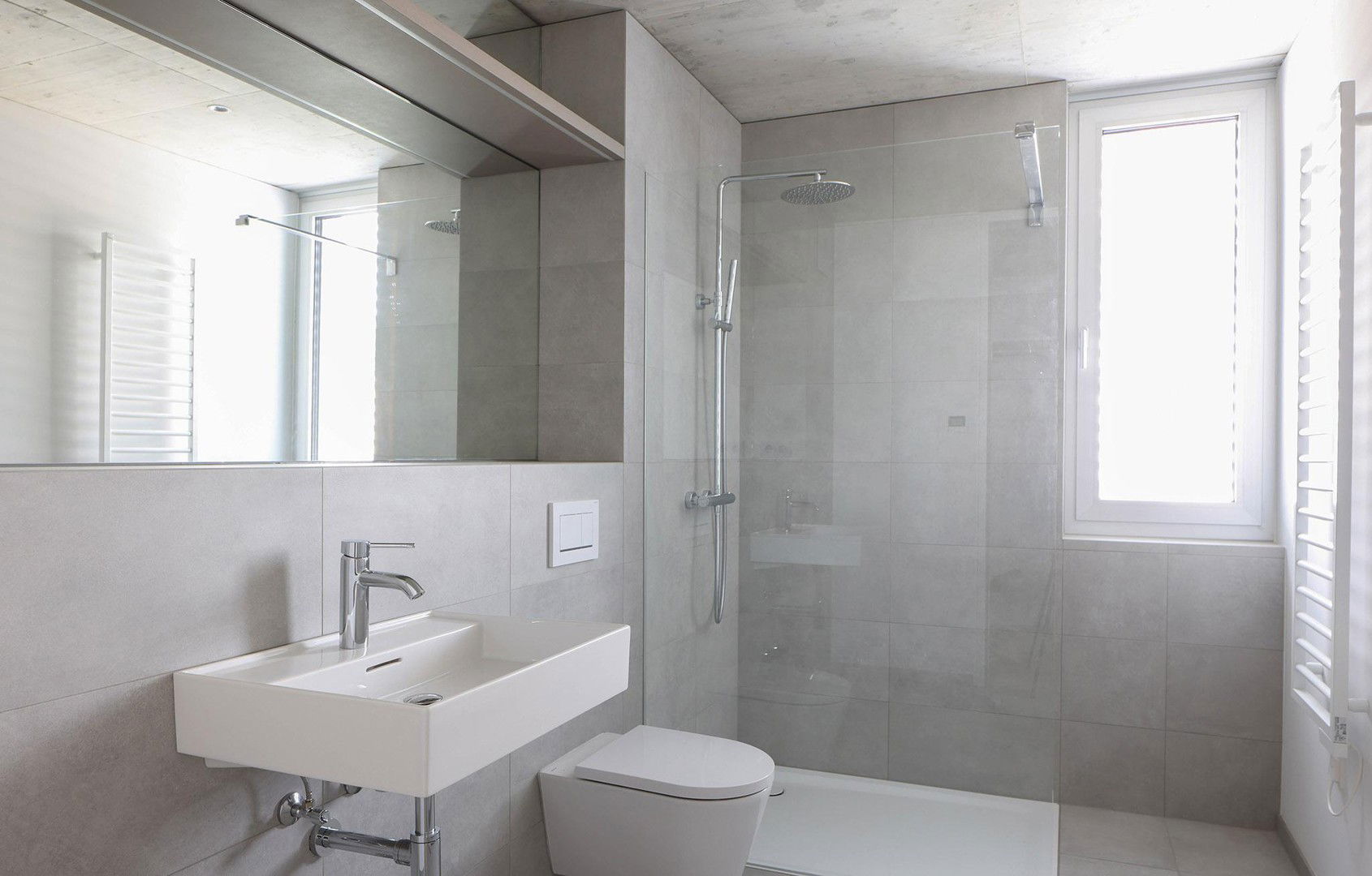 o Badezimmer mit Sanitärgegenständen in Saphirkeramik und Walk-in Dusche