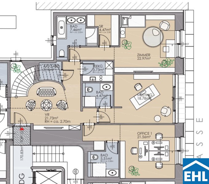 Hochwertige, voll ausgestattete Küche Fliesen (Feinsteinzeug) in den Nassräumen, Fischgrätparkett in den Wohnräumen Moderne Bäder mit Dusche und/oder Badewanne, Handwaschbecken, Handtuchheizkörper Videogegensprechanlage mit Farbvideofunktion Klimaanlage Fußbodenheizung mittels Fernwärme elektrische Außenjalousien unmöbliert Jeder Wohnung ist ein Kellerabteil zugeordnet Aufzug ist vorhandenDas Objekt ist nicht barrierefrei.