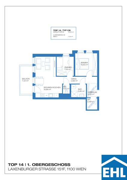 Die Wohnung selbst befindet sich im 1. Obergeschoss und verfügt über eine großzügige Wohnküche, zwei getrennt begehbare Schlafzimmer, ein Badezimmer mit Dusche und Waschmaschinenanschluss, ein separates WC, sowie einen Vor- und Abstellraum. Der ca. 7m² große Balkon rundet das Wohnerlebnis perfekt ab.
