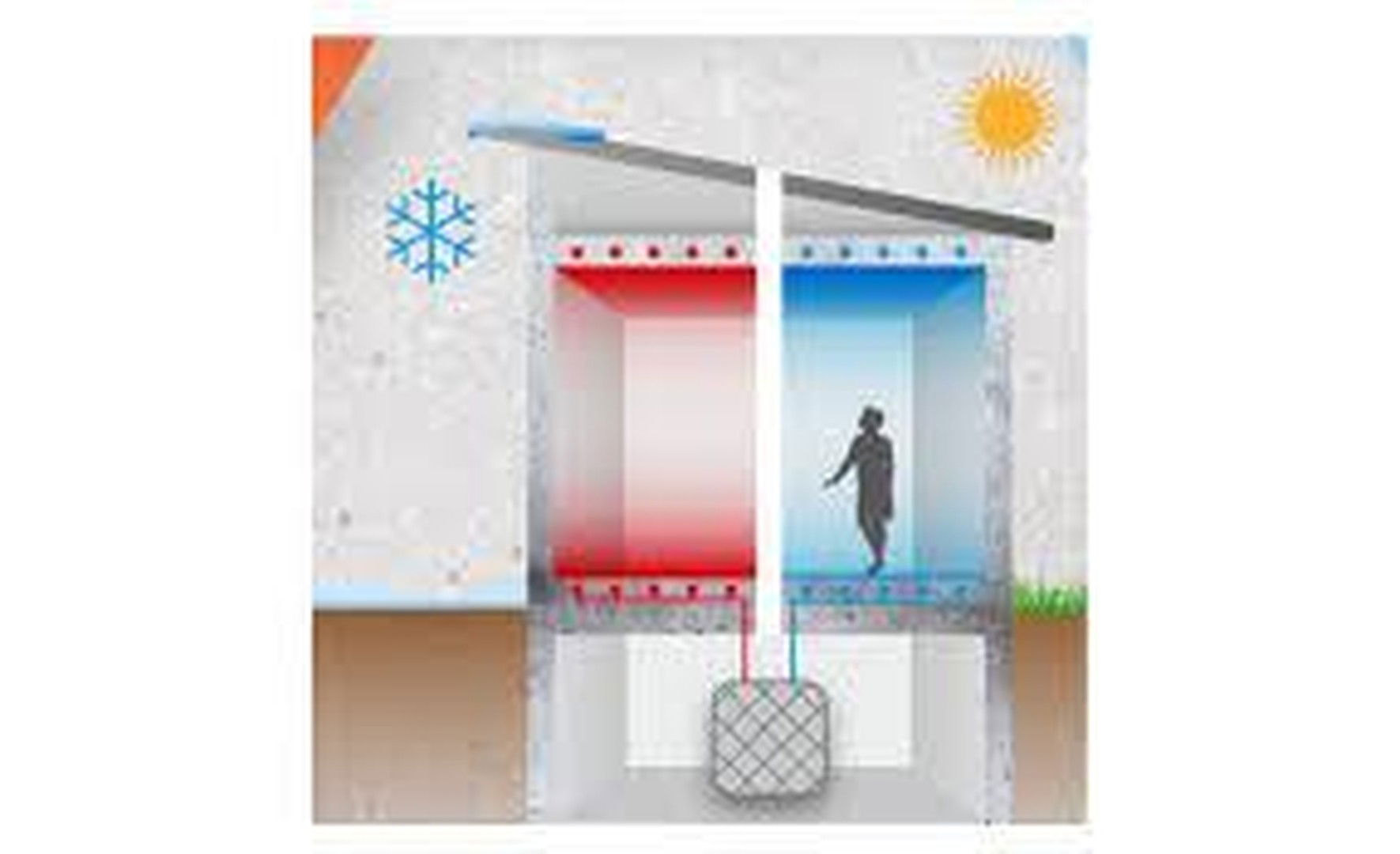 Im Gegensatz zu anderen Bauten wurde hier das Konzept der Bauteilaktivierung berücksichtigt, dadurch wird das Gebäude über den Baukörper im Winter beheizt und im Sommer gekühlt!