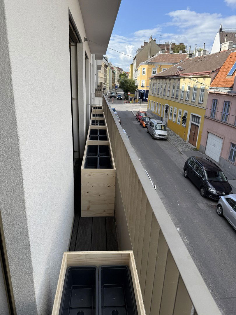 * Balkon: Klein, aber fein – lädt zum Entspannen ein. (Optional mit oder ohne Blumentröge)